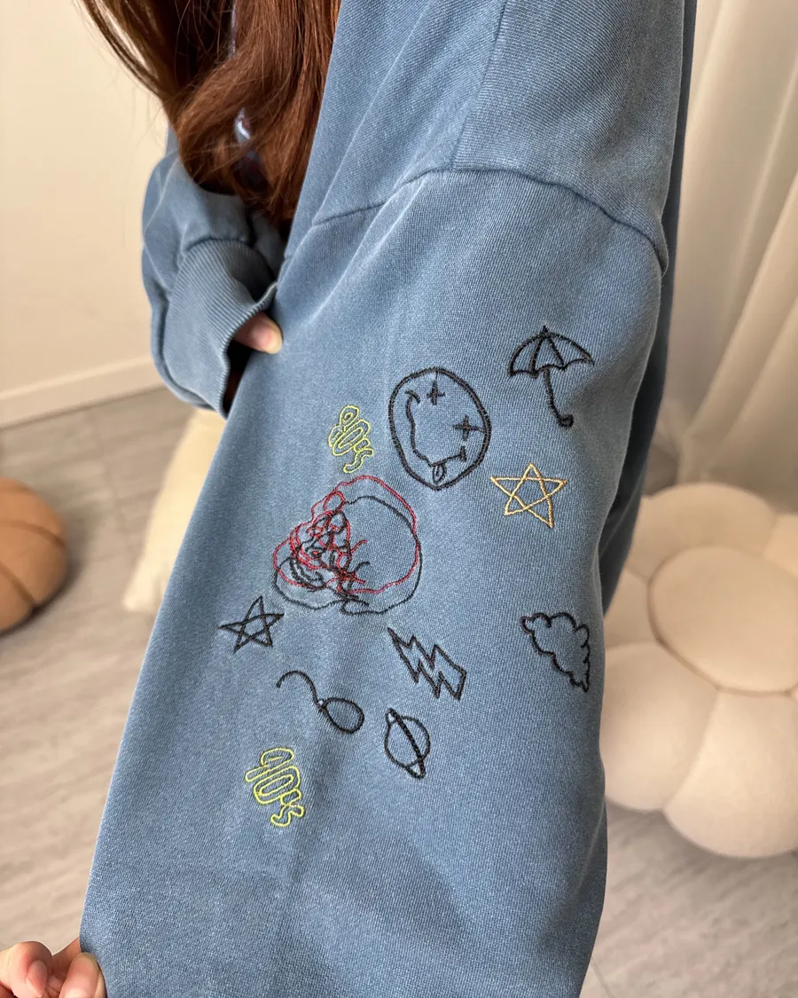 美式塗鴉刺繡上衣